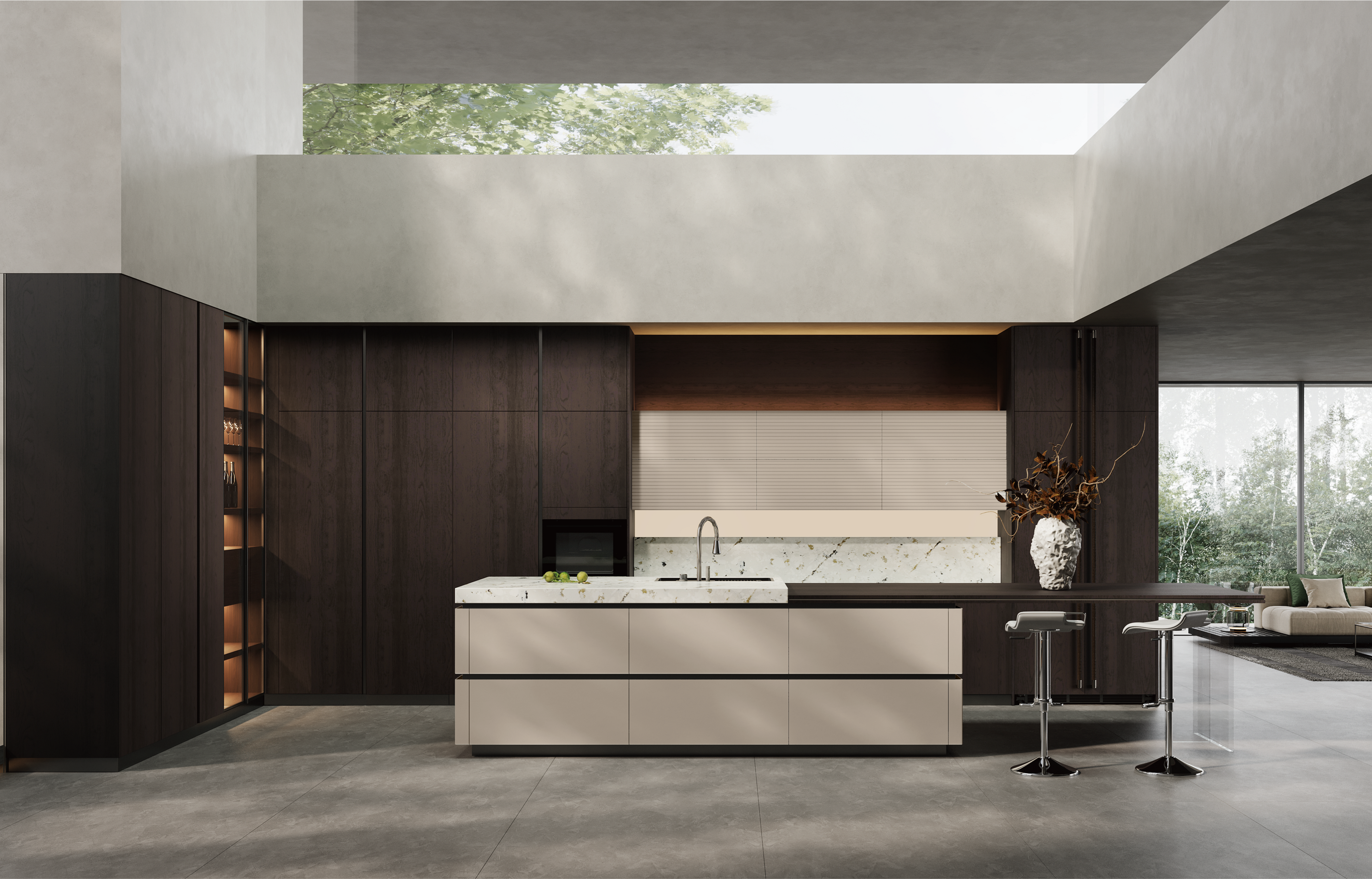 通过PA尊龙时凯厨柜量体裁柜,定制出适合主厨下厨的烹饪区和洗涤区的舒适高度。
